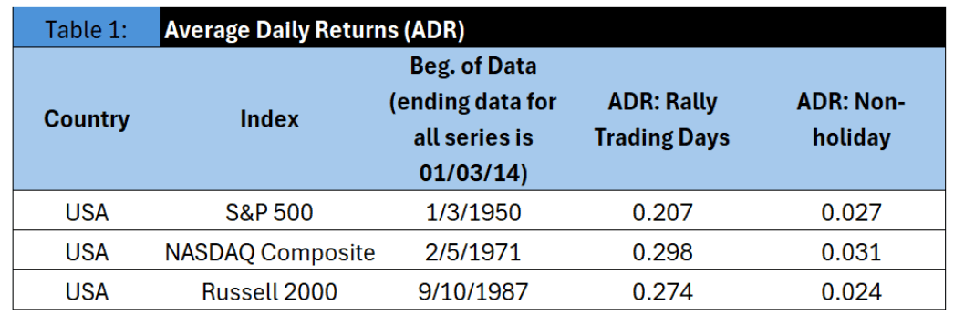 Investors are drawn to the Santa Claus rally for potential profits during a brief, specific period. More specifically, inferences from Table 1 confirm that this phenomenon may not be random: